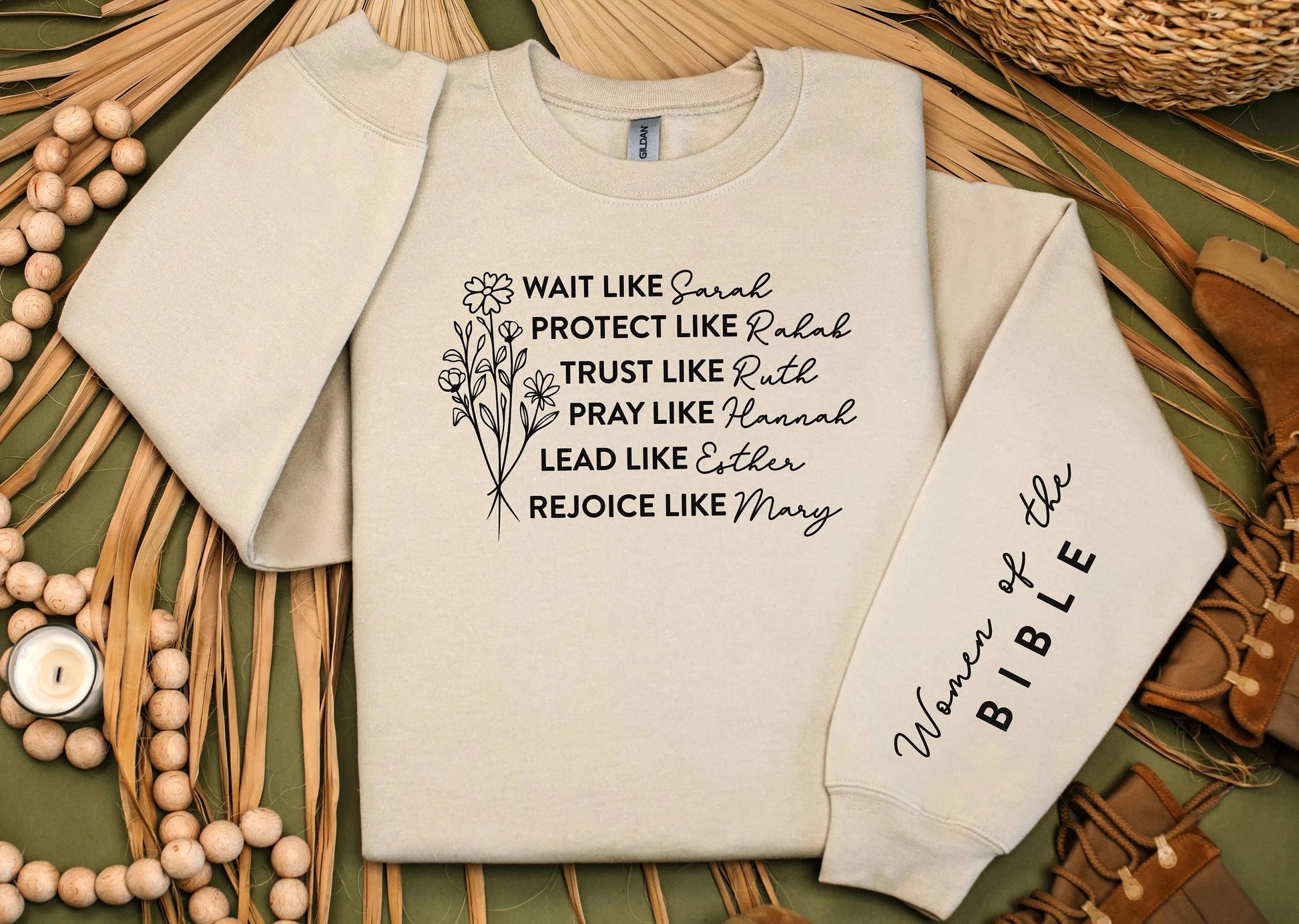 This beautiful faith-inspired design celebrates powerful women from the Bible and the virtues they represent.